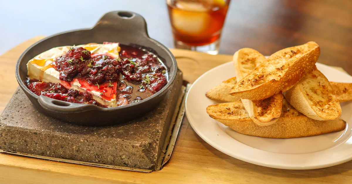 A Masters-inspired pimento cheese dip drizzled with hot honey, served with a full spread of accompaniments—crostini, fresh veggies, house-made pickles & shaved applewood-smoked ham. | $10
